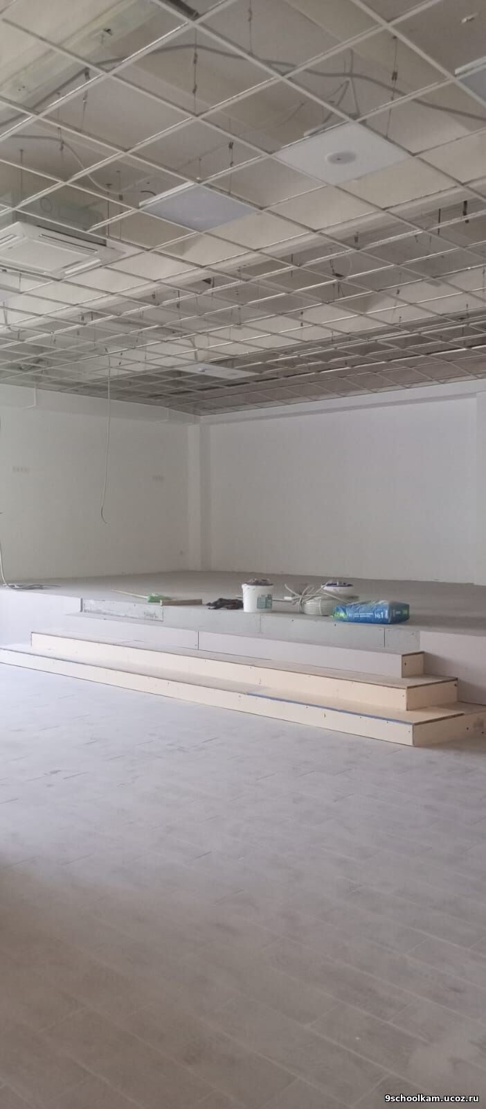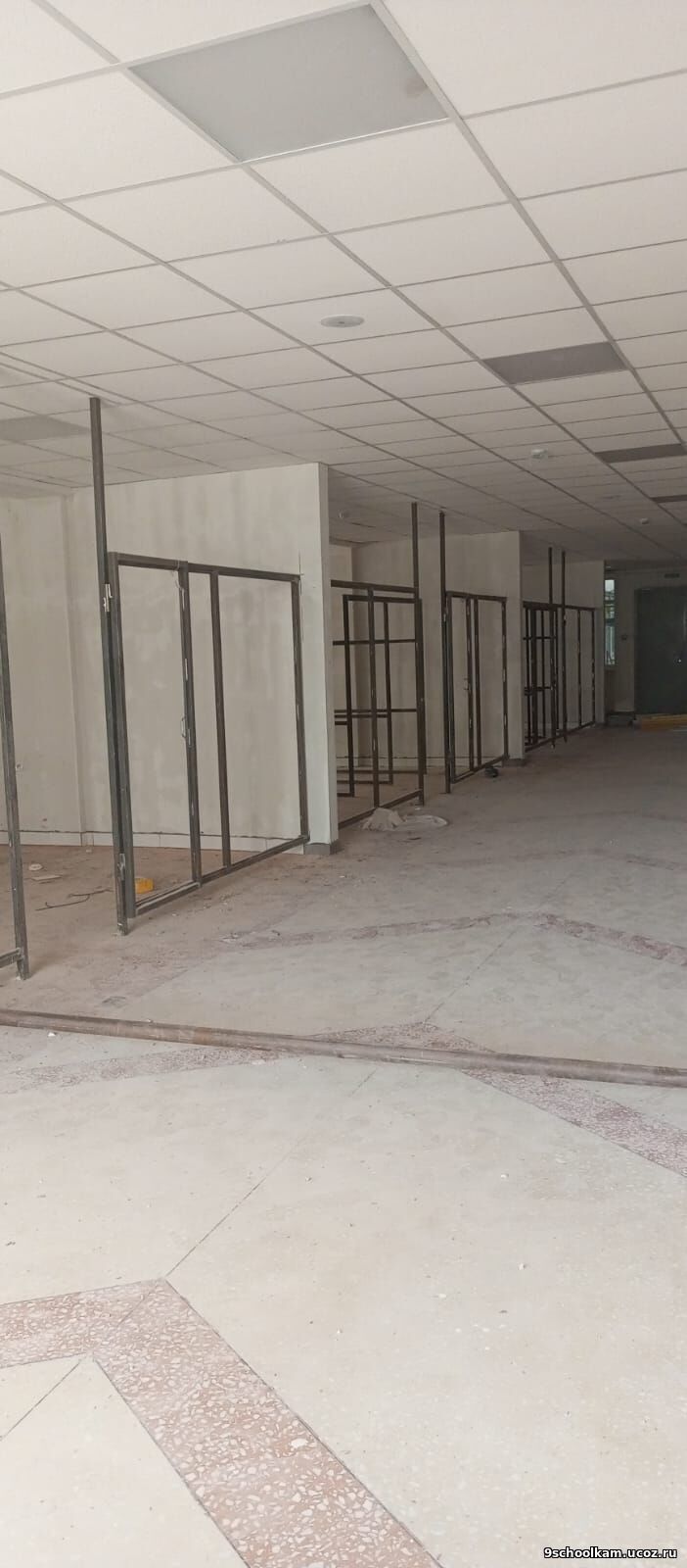 - Идет подготовка стен корпуса со спортивным залом, столовой и актовым залом к шпаклеванию.